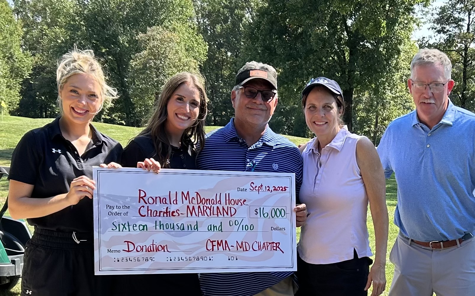 Thank you to everyone that attended CFMA Maryland's Bruce Tabler Memorial Golf Outing on Friday September 16, 2022. We had an amazing group of golfers, volunteers and sponsors! The weather was perfect and we were able to present The Ronald McDonald House with $7,500!